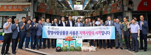 지역자금의 역외 유출을 방지하고 지역 내 소비 증가로 지역 소상공인과 자영업자의 소득증대를 위해 발행된 함양사랑상품권의 활성화를 위해 직접 전통시장을 찾아 상품권으로 물품을 구입하며 시장상인과 소비자들에게 이용 활성화 홍보할동을 펼쳤다.