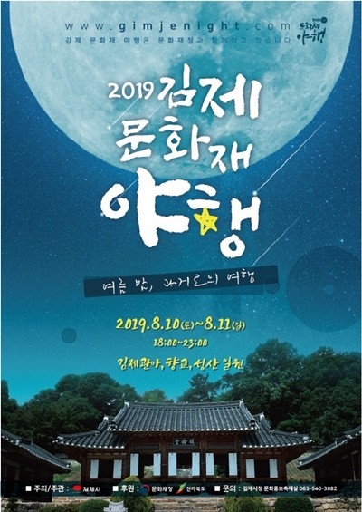 ‘김제 문화재 야행’이 오는 8월 10일과 11일 양일간 저녁 6시부터 밤11시까지 개최된다.김제시는 조선시대의 행정업무를 관장하던 ‘김제관아’와 국립교육기관이었던 ‘김제향교’가 국가 사적지로 관리되고 있으며, 전국 유일, 온존하게 보존된 곳이어서 그 의미가 남다르다.
