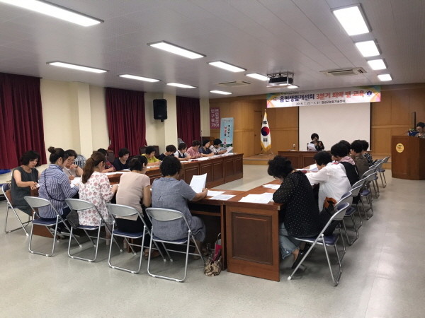 이번 3분기 회의는 상반기 동안 추진한 지역사회 봉사활동, 과제교육 등 주요활동을 평가하고 9월 초에 실시하는 생활개선회 지도력 배양교육, 노인복지회관 봉사활동, 창녕향토음식경연대회 등 하반기 일정에 대한 안내와 토의를 진행했다.