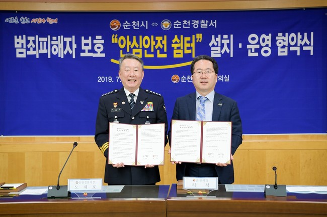 순천시와 순천경찰서는 31일 순천시청 소회의실에서 범죄피해자 보호 ‘안심 안전 쉼터’설치 · 운영 협약식을 가졌다.