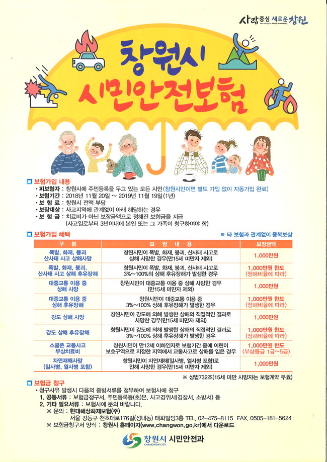 창원시민이면 누구나 ‘시민안전보험’ 혜택 받으세요