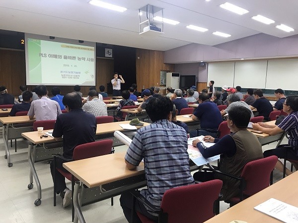 이날 교육을 맡은 신종덕 경기도농업기술원 농촌지도사는 ‘PLS 이해와 올바른 농약 사용’을 주제로올바른 농약 사용 방법 과수·채소 등 농작물 병해충 방제 방법 등을 설명했다.