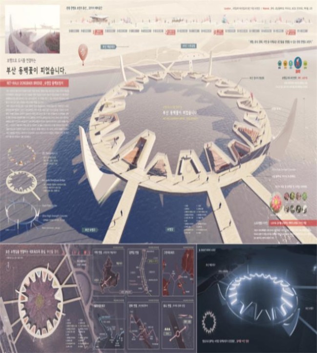대상은 최명환 씨와 김주현 씨의 작품인 ‘부산 동백꽃이 피었습니다’가 차지했다. 수영구와 해운대구의 접점에 위치한 수영강 일대를 부산의 시화인 동백꽃을 응용한 원형 다리로 연결하고, 체험과 휴식, 문화, 자연 등 20가지 테마공간을 배치해 시민과 관광객 모두에게 매력 있는 보행길을 선보여 높은 점수를 받았다.