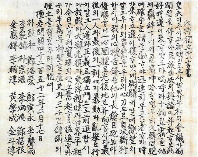 하동군과 경남독립운동연구소는 독립기념관이 소장하고 있는 하동 ‘대한독립선언서’를 국가문화재로 등록해 줄 것을 문화재청에 요청했다고 1일 밝혔다.
