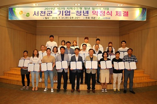 서천군은 지난 31일 문예의 전당 소강당에서 2019년 제2차 지역주도형 청년 일자리 사업으로 ‘서천군-기업-청년 약정’을 체결했다.