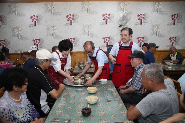 이날 행사는 원기회복에 좋은 보양식 삼계탕과 시원한 수박을 대접하여 무더운 여름을 건강하게 보내기 위한 이웃사랑 실천의 의미로 마련되었으며, 이종욱 NH농협 청도군지부장과 직원들은 급식봉사 및 지역 어르신들과 정을 나누는 시간을 가졌다.