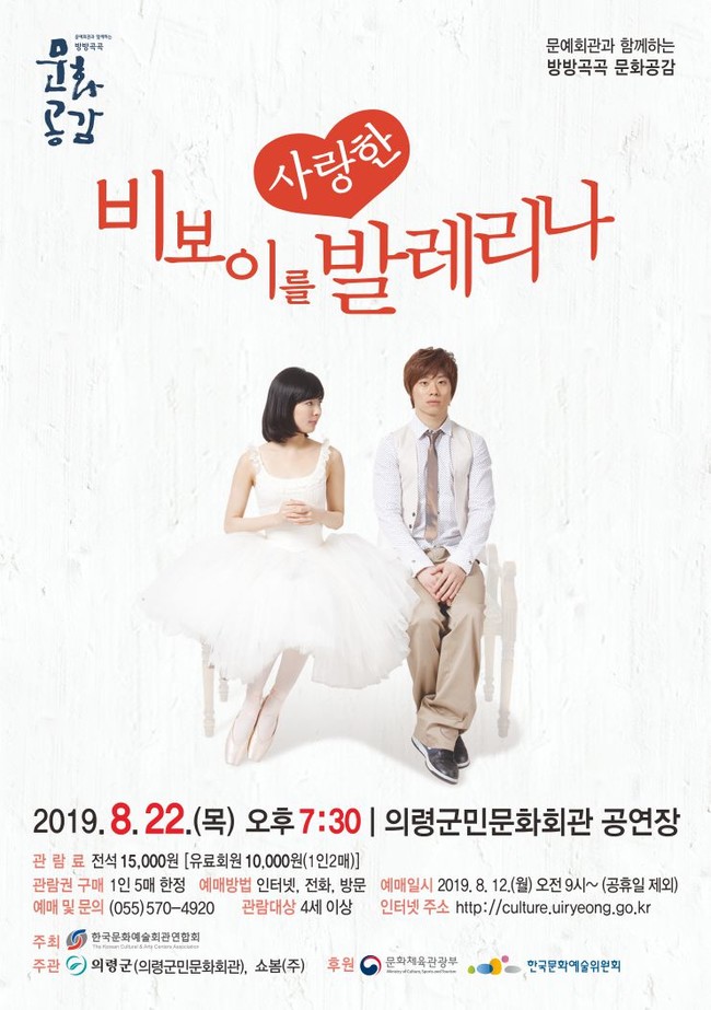 의령군에서는 오는 22일 오후 7시30분 문예회관과 함께하는 방방곡곡 문화공감사업-민간예술단체 우수공연 프로그램인 ‘비보이를 사랑한 발레리나’를 공연한다.