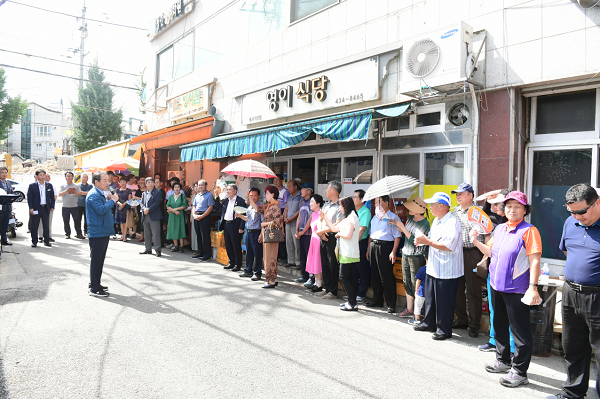 양금동에서는 지난 7월 31일 오후3시 황금시장에서 시장, 시의원, 각종 단체장, 황금시장 상인회 회원을 포함하여 지역주민 100여명이 참석한 가운데 황금시장 골목 벽화사업 준공식을 개최했다.
