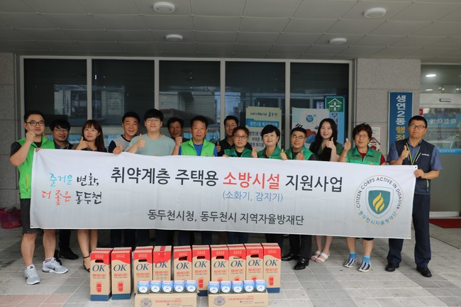동두천시는 수급자, 차상위, 독거노인, 한부모 가정 등 화재대응 취약계층 204세대를 선정하여, 동두천시 지역자율방재단, 의용소방대와 함께 지난 7월부터 8월 말까지 소화기 196대를 배부하고, 화재감지기 497대를 설치할 예정이다.
