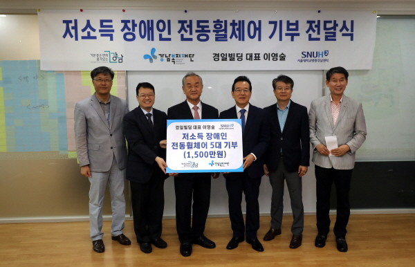‘기분 좋은 변화, 품격 있는 강남’으로 도약 중인 강남구가 지난 31일 “저소득 장애인의 전동휠체어 구입에 써달라”며 이영술 경일빌딩 대표가 전달한 기부금 1500만원을 관내 장애인 5명에게 전달한다.