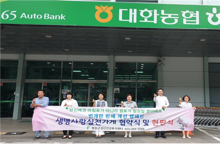 이번 참여업소는 대화농협을 포함 평창농협 방림 및 계촌지점 하나로마트에서 진행 되었으며, 생명사랑실천가게 협약은 일산화탄소중독 요인과 자살에 이용되고 있는 번개탄을 올바르게 사용하여, 자살을 예방하고 생명존중 문화를 확산시켜 자살률을 낮추고자 추진됐다.