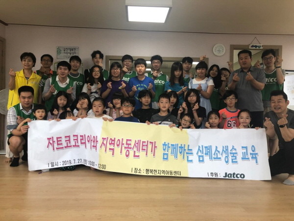 7월 27일 ㈜자트코코리아 임직원들이 행복한지역아동센터 아동들과 함께 레크레이션 활동 및 심폐소생술 교육 실시