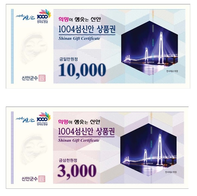‘1004섬 신안 상품권’은 지역내 소비촉진과 자금의 역외유출 방지로 지역경제 활성화, 전통시장 상권보호 육성, 지역공동체 유대강화를 위해 발행하는 지역 상품권이다.
