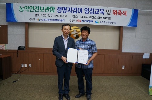 나주시 보건소와 정신건강복지센터는 지난 29일 2층 회의실에서 관내 19개 마을 이장 등 주민 57명을 ‘생명사람지킴이’로 신규 위촉하고, 농약안전보관함 관리 요령 등 활동 전반에 대한 양성교육을 실시했다.