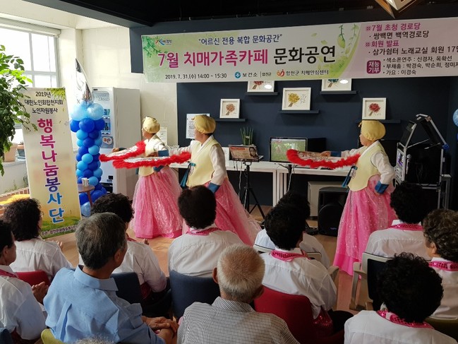 치매가족카페 문화공연은 매월 마지막 주 수요일에 개최되며 합천군 관내 경로당어르신을 순번제로 관객으로 초청하여, 권역별 쉼터를 이용하는 어르신의 프로그램 발표와 예술적 재능이 있는 지역주민의 재능기부로 운영된다.