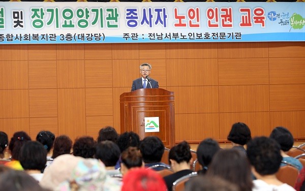 이번 교육은 관내 노인복지지시설 및 장기요양기관 모든 종사자에 대한 노인인권교육이 법적으로 의무화됨에 따라 노인인권 의식 향상을 위해 군에서 집합교육으로 실시했고, 전남서부노인보호전문기관 강희숙 관장이 직접 강의를 하고 동영상을 통해 노인학대의 실제 사례를 알아보고 노인에 대한 학대 발견 즉시 노인보호전문기관 또는 수사기관에 신고해야 할 것을 안내했고, 관내 노인시설에서 노인들의 인권보호에 앞장 서 줄 것을 당부했다.