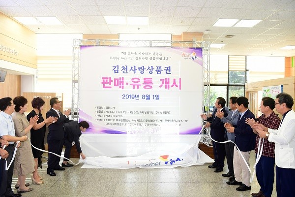 이날 행사에는 김충섭 김천시장, 김세운 김천시의회 의장, NH농협은행 김천시지부장, 상인회장, 외식업·숙박업·휴게음식업·미용업 등 관련 기관단체장 등이 참석하여 기념식을 가지고 상품권을 구입하는 등 김천사랑 상품권의 성공적인 발매 개시를 기념했다.