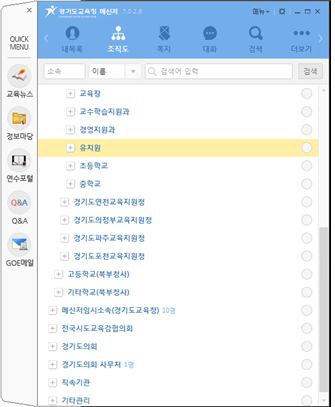 경기교육메신저에 유치원이 포함된 모습
