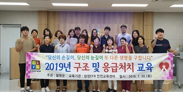 철원군에서는 관내 구급차 운전자, 자동심장충격기 관리자, 보건교사, 치매 및 만성질환 관리자 등 22명을 대상으로 심폐소생술 및 자동심장충격기 사용법 등을 교육했다.