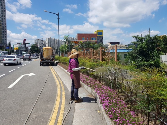 또한 영일대 장미원 등 주요 녹지시설 내 관수시설을 오전, 오후 2차례 가동하여 수목과 초화류의 활력을 유지할 계획이며 수분 증발을 최소화하기 위해 멀칭작업을 병행 실시한다.
