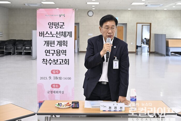 전진선 군수는 “오늘(18일)은 ‘양평군 버스노선체계 개편 계획 연구용역 착수보고회’ 시간을 가졌다. 양평군은 면적이 넓고 인구가 분산되어 있어 버스 배차간격이 길고, 운행횟수가 부족하여 주민들이 대중교통을 이용하기 불편한 것이 현실이다”라며 “이에 군에서는 주민들이 편리하게 대중교통을 이용할 수 있도록 기차역을 거점으로 하는 방안 등 내년 상반기까지 교통체계 개편을 추진한다”고 말했다.
